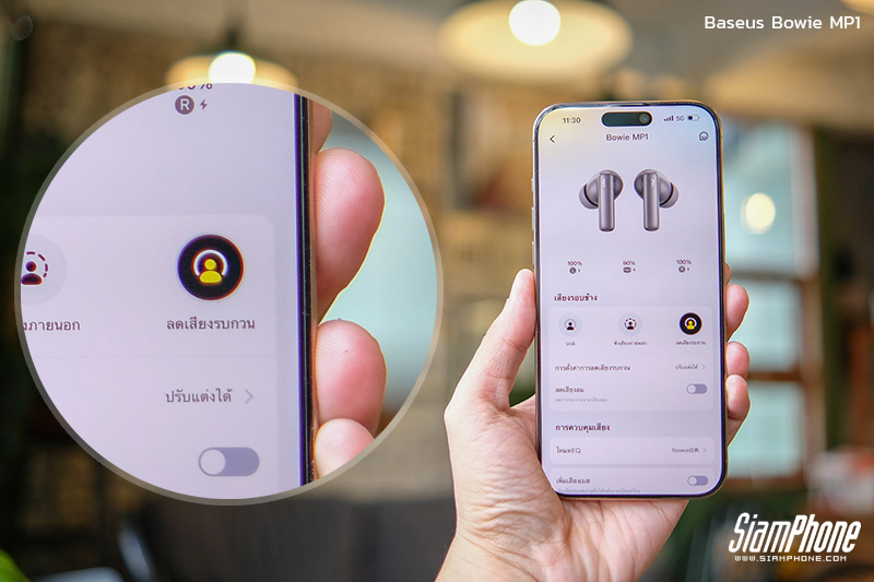 จุดเด่นที่พลาดไม่ได้ของรุ่นนี้คือระบบตัดเสียงรบกวนแบบไฮบริดที่สามารถลดเสียงรบกวนได้สูงสุดถึง -55dB ฟีเจอร์นี้ตอบโจทย์การใช้ชีวิตประจำวันมากๆ เช่น หากคุณต้องทนกับเสียงคนข้างๆ นอนกรนจนหลับยาก การใส่หูฟังตัวนี้จะช่วยตัดเสียงกวนใจให้คุณหลับสนิทได้ หรือเวลาที่ต้องนั่งสมาธิทำงานในคาเฟ่ที่คนพลุกพล่าน หรือเดินทางบนรถไฟฟ้าที่มีเสียงดังตลอดเวลา ระบบ ANC ตัวนี้จะช่วยเปลี่ยนบรรยากาศรอบตัวให้เงียบสงบเหมือนมีสเปซส่วนตัวในทันที