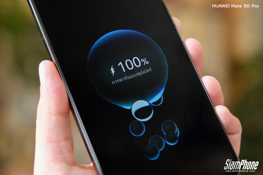 เพื่อรองรับการใช้งานที่ยาวนาน HUAWEI Mate 80 Pro จึงมาพร้อมกับแบตเตอรี่ที่มีความจุขนาดใหญ่ถึง 5750 mAh ในส่วนของเทคโนโลยีการชาร์จ ตัวเครื่องรองรับการชาร์จไวแบบมีสาย 100W SuperCharge และรองรับการชาร์จไวแบบไร้สายที่ 80W SuperCharge