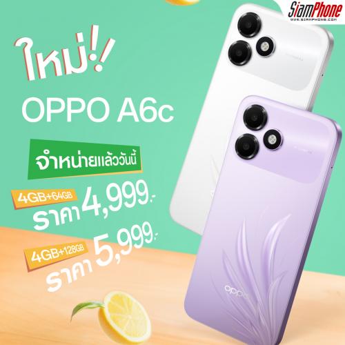 OPPO A6c สมาร์ตโฟนรุ่นเล็ก แต่กระหึ่มกับหน้าจอ 120Hz แบตเตอรี่ใหญ่ 7000mAh พร้อมขายในไทยตอนนี้