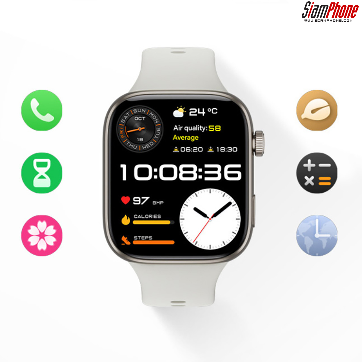 รายละเอียดอื่นๆ จะรองรับการเชื่อมต่อไร้สายด้วยเทคโยโลยี Bluetooth 5.4 ใช้งามร่วมกับ Android, iOS และ HarmonyOS ส่วนแบตเตอรี่มีขนาด 420mAh ใช้งานได้สูงสุด 21 วัน หากเปิดใช้งาน AOD แบบใช้งานเบาๆ จะอยู่ได้ราวๆ 6 ชั่วโมง