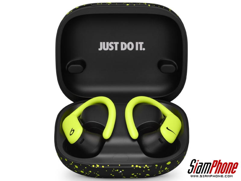 นอกจากนี้ หูฟังทั้งสองข้างยังมีโลโก้ที่แตกต่างกัน ข้างหนึ่งประทับตราสัญลักษณ์ของ Beats ในขณะที่อีกข้างเป็นโลโก้ Swoosh ของ Nike สีดำ ซึ่งช่วยเพิ่มความโดดเด่นและมีสไตล์ไม่เหมือนใคร ส่วนตัวเคสชาร์จก็ได้รับการออกแบบในธีมเดียวกัน พร้อมสลักสโลแกนสุดคลาสสิกของ Nike อย่าง "Just Do It" ไว้ที่ด้านในของเคส