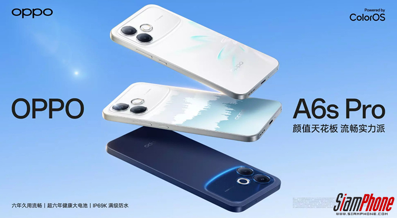 OPPO A6s Pro สมาร์ตโฟนรุ่นใหม่ถูกเปิดตัวอย่างเป็นทางการในประเทศจีน โดยเป็นรุ่นอัปเกรดของ OPPO A6s ที่มีการวางขายในประเทศไทยไปแล้วตอนนี้ สำหรับความโดดเด่นที่เพิ่มเข้ามาคือ เปลี่ยนมาใช้ชิปเซ็ต MediaTek Dimensity 6360 Max และได้หน้าจอแสดงผลพาแนล AMOLED กว้าง 6.57 นิ้ว ความละเอียด FHD+ อัตรา Refresh Rate สูงสุด 120Hz ปรับความสว่างได้สูงสุด 1400nits ส่วนแบตเตอรี่ยังมีขนาด 7000mAh สนับสนุนชาร์จเร็วผ่านสาย 80W