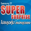 สำหรับแคมเปญ “ซูเปอร์ เซอร์ไพรส์ - โปรสุดคุ้ม สเปคสุดแรง” ประกอบด้วยผลิตภัณฑ์ไฮไลท์ ที่พาเหรดกันมาอย่างคับคั่ง ประเดิมด้วยรายการเซอร์ไพรส์ ดิสเคาน์ ประกอบด้วยซัมซุง โน้ตบุ๊ค ซีรีส์ 9 ที่มาพร้อมกับสุดยอดดีไซน์หรูหราระดับโลก บางเพียง 16 มม. เบาเพียง 1.3 กก. ทนทานด้วยวัสดุดูราลูมิน (Duralumin) ในราคาสุดเซอร์ไพรส์เพียง 36,900 บาท จาก 46,900 บาท พร้อมฟรีซัมซุง ดีวีดี ไรท์ตอร์ มูลค่า 2,290 บาท ตามด้วยโน้ตบุ๊ครุ่นล่าสุด ได้แก่ ซัมซุง โน้ตบุ๊ค ซีรีส์ 7 โครนอส และซัมซุง โน้ตบุ๊ค ซีรีส์ 5 อัลตร้าที่ขับเคลื่อนด้วยขุมพลัง Samsung Express Cache ให้คุณสัมผัสความเร็วที่เหนือกว่าเดิม โดยใช้เวลาเปิดเครื่องเพียง 2 วินาที และบูธเครื่องเพียง 19 วินาที ทั้งสองรุ่นมาในราคา 37,000 และ 32,200 บาทตามลำดับ พร้อมฟรีกระเป๋าโน้ตบุ๊คซัมซุงมูลค่า 2,990 บาท