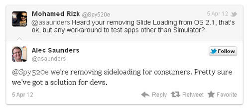 Research In Motion (RIM) กำลังวางแผนที่จะตัดความสามารถในการประยุกต์ใช้แอพพลิเคชั่นแอนดรอยด์บนแท็บเล็ต BlackBerry PlayBook ซึ่งฟีเจอร์ดังกล่าวเป็นที่รู้จักกันในชื่อของ PlayBook Sideloading โดยอ้างว่าร้อยละ 53 จากการสอบถามนักพัฒนาแอนดรอยด์เชื่อว่าปัญหาการละเมิดลิขสิทธิบนแอพพลิเคชั่นบางตัวจะกลายเป็นปัญหาใหญ่ในภายหลัง และอาจส่งผลให้นักพัฒนาสูญเสียรายได้ตามมา ซึ่งทั้งหมดนี้มาจาก Alec Saunders ประธานฝ่ายนักพัฒนาของบริษัท RIM ผู้ใกล้ชิดกับเหล่านักพัฒนาได้เผยแบบสำรวจจากโปรแกรมเมอร์ รวม 75 คนในปีก่อน