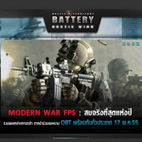 ล่าสุด บริษัท ทรู ดิจิตอล พลัส ผู้นำในเรื่องเกม FPS ได้เปิดตัวเกมใหม่ “Battery Online Modern war FPSW” พร้อม 4 พรีเซ็นเตอร์ จากทรูเอเอฟ รอน, พะแพง, เต๋า, แพรวา กับเพลง “เส้นขนาน” อย่างยิ่งใหญ่ไปเมื่อวันที่ 15 พ.ค. ที่ผ่านมา และความแรงยังคงต่อเนื่องภายหลังที่มีการเปิดให้เล่นเกมอย่างเป็นทางการ (OBT) ตั้งแต่วันที่ 17 พ.ค. ทาง www.BTR.in.th ซึ่งได้รับเสียงตอบรับจากคอเกมอย่างล้มหลาม ด้วยเหตุนี้ ทรู ดิจิตอล พลัส จึงเอาใจคอเกมด้วยอีก 2 กิจกรรมพิเศษ ได้แก่ การอัพเดทปืนใหม่ทั้ง KTR-08 และ Sniper Rifle: Dragunov SVD พัฒนาให้เป็นสุดยอดในการยิงและลอบสังหาร แถมด้วยแผนที่ใหม่ ซึ่งเป็นสมรภูมิใหม่ที่โหด และดิบกว่าเดิม รับประกันความมันส์ สมจริง ถูกใจคอเกม Modern War ซึ่งสามารถค้นพบว่า เกม Battery Online เป็นคำตอบที่สมบูรณ์และลงตัวที่สุด