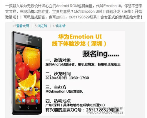 ระบบปฏิบัติการแอนดรอยด์เวอร์ชั่น 4.0 ICS ยังคงเป็นเป้าหมายหลักของ Huawei ในการนำ UI ที่ทางบริษัทสร้างขึ้นไปใช้งาน โดยมีกำหนดการเปิดตัวอย่างยิ่งใหญ่ในวันที่ 9 มิถุนายน นี้ และจะสามารถใช้งานได้ในเดือนกรกฎาคม ยังไม่แน่ชัดว่า Huawei มีแผนจะออกอัพเดทให้กับสมาร์ทโฟนแอนดรอยด์ที่วางจำหน่ายไปแล้วหรือไม่ แต่ดูเหมือนว่าอุปกรณ์แอนดรอยด์ที่ถูกขายหลังจากเดือนกรกฎาคมจะได้รับ UI ใหม่โดยอัตโนมัติ และแน่นอนว่าจะอยู่ในสมาร์ทโฟนเรือธงของบริษัทอย่าง Huawei Ascend D quad ที่น่าจะมีกำหนดวางจำหน่ายล่าช้าออกไปจนถึงเดือนกรกฎาคมเพื่อรอ Emotion UI ด้วยนั่นเอง