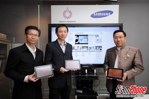 ซัมซุงนำโดยนายบุญเลิศ วิบูลย์เกียรติ ผู้อำนวยการกลุ่มธุรกิจลูกค้าองค์กร (กลาง) เดินหน้ารุกตลาดบีทูบี (Business to Business) เจาะสถานบันการศึกษาต่อเนื่อง ล่าสุดประกาศความร่วมมือ กับมหาวิทยาลัยรังสิต นำโดย ดร.อาทิตย์ อุไรรัตน์ อธิการบดี (ขวา) ร่วมกันพัฒนาการเรียนการสอนรูปแบบใหม่ในแบบ “สมาร์ทคลาสรูม (Smart Classroom)”