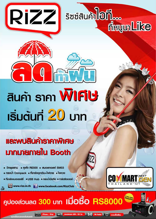 ริซซ์ สินค้าไอที...ที่คุณ Like จัดโปรโมชั่นลดท้าฝน เอาใจคนรุ่นใหม่ที่มีไลฟ์สไตล์การใช้งานอุปกรณ์ไอที Accessories ด้วยดีไซน์ที่เก๋ไก๋อินเทรนด์ไม่ซ้ำใคร ในราคาพิเศษ เริ่มต้นเพียง 20 บาท