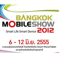 มือถือหลากหลายแบรนด์ดังแห่ร่วมงาน Bangkok Mobile Show 2012 จัดโปรโมชั่นพิเศษ พร้อมให้คุณได้สัมผัสและเป็นเจ้าของโทรศัพท์เครื่องโปรดได้แล้ว ตั้งแต่วันนี้ ถึง 12 มิถุนายน 2555 ณ ซีคอนสแควร์