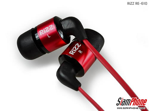 หูฟัง Rizz รุ่น RE-610 เป็นหูฟังลักษณะสอดหู (In-Ear) ดีไซน์เท่ห์ ทันสมัย มีน้ำหนักเบา ส่วมใส่สบาย กระชับ และรู้สึกนุ่มด้วยจุกหูฟังแบบยางซิลิโคน ทั้งยังให้เสียงที่มีคุณภาพ เบสแน่นคมชัด เต็มอิ่มกับทุกมิติเสียง สามารถใช้งานได้กับอุปกรณ์หลายชนิด ทั้งเครื่องเล่นเพลง MP3, iPod, iPhone, BlackBerry, Nokia, Samsung, คอมพิวเตอร์ และอุปกรณ์ที่รองรับช่องเสียบหูฟังขนาด 3.5 มิลลิเมตร Rizz รุ่น RE-610 วัสดุสายของหูฟังทำจากยาง ซึ่งถูกออกแบบให้มีลักษณะแบน สามารถโค้งงอได้ และไม่พันกันเป็นปม มาพร้อมยางรองหูฟัง 3 ขนาด และถุงใส่หูฟัง จำหน่ายในราคา 299 บาท