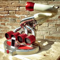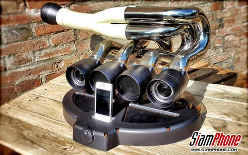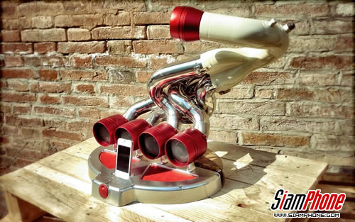 นอกจากตลาดมือถือจะมีการแข่งขันเปิดตัวมือถือและสมาร์ทโฟนรุ่นใหม่ๆ ออกมาล่อตาล่อใจเราแล้ว ตลาด Gadget สำหรับมือถือก็น่าสนใจไม่แพ้กัน เพราะถือเป็นส่วนหนึ่งที่ช่วยเพิ่มฟังก์ชั่นการใช้งาน ความทันสมัยและบอกถึงสไตล์ที่แตกต่างกันของแต่ละคน เราจึงได้เห็น Gadget หน้าตาและฟังก์ชั่นหลากหลาย ที่แข่งกันเรื่องดีไซน์ รวมไปถึงความแปลกไม่ซ้ำใคร และ Gadget ที่เราจะนำเสนอในวันนี้ ไม่ซ้ำใครแน่นอน เพราะเป็นแท่นวางและลำโพง สำหรับ iPhone และ iPod ที่สร้างจากท่อไอเสีย ?!