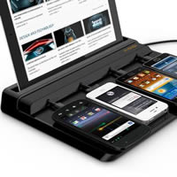 ถ้าคุณเป็นคนที่ชื่นชอบในเทคโนโลยี และเป็นเจ้าของทั้งสมาร์ทโฟน ทั้งแท็บเล็ต และมีมากกว่า 1 เครื่อง คุณคงต้องมีสายชาร์จหลายประเภท และต้องหาเต้ารับเสียบหลายช่อง วันนี้เรามี Gadget จาก iFazz มาแนะนำ ซึ่งเป็นทั้งแท่นชาร์จสำหรับแท็บเล็ต และสมาร์ทโฟนได้ถึง 4 เครื่อง สามารถเปลี่ยนสลับหัวชาร์จกับสมาร์ทโฟนแต่ละรุ่นด้วยช่อง Micro USB บนแท่นวางที่พอเหมาะกับสมาร์ทโฟน และใช้แทนขาตั้งสำหรับแท็บเล็ตได้อีกด้วย