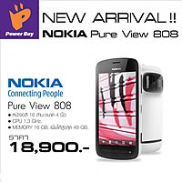 Nokia 808 PureView สมาร์ทโฟนที่ทำงานบนระบบปฎิบัติการ Nokia Belle หน้าจอแสดงผล AMOLED พร้อมกระจก Gorilla Glass กว้าง 4 นิ้ว ความละเอียด 640 x 360 พิกเซล หน่วยประมวลผลความเร็ว 1.3GHz หน่วยความจำภายใน 16GB รองรับ MicroSD ได้สูงถึง 32GB สนับสนุนการเชื่อมต่อ WiFi, Bluetooth 3.0, Micro USB, TV-out, HDMI, NFC และ รองรับการถ่ายโอนข้อมูลกับ Flash Drive โดยตรง