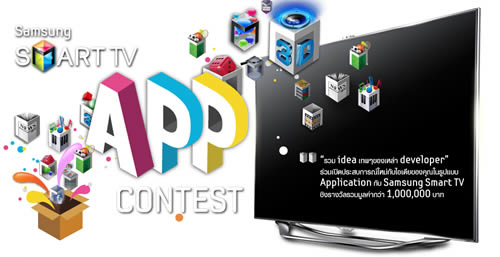 ซัมซุงผุดโครงการสุดเจ๋ง “ซัมซุง สมาร์ททีวี แอพ คอนเทสต์” เปิดเวทีชวนนักคิด นักสร้างสรรค์ ส่งไอเดียสุดบรรเจิด เพื่อพัฒนาเป็นแอพพลิเคชันจริงบนซัมซุง สมาร์ททีวี ตอบโจทย์ครอบคลุมทุกไลฟ์สไตล์ ผ่านแอพพลิเคชัน 5 กลุ่ม ทั้งเกม โซเชียล เน็ตเวิร์ค วิดีโอ ข้อมูลข่าวสาร และยูทิลิตี้ ให้ผู้บริโภคชาวไทยได้เปิดประสบการณ์ใหม่ในการรับชมทีวี สนใจส่งไอเดียหรือสมัครร่วมพัฒนาแอพได้ที่ www.samsung.com/th/smarttv/appscontest