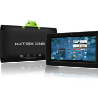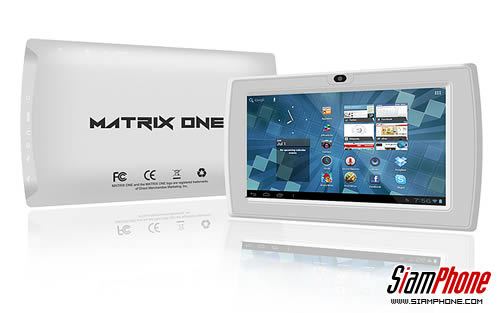 Matrix One แท็บเล็ตแอนดรอยด์จะมาพร้อมมอบเป็นของขวัญแด่คนพิเศษของคุณ โดยมีวางจำหน่ายอย่างเป็นทางการแล้วด้วยการสนนราคาอยู่ที่ $90 หรือประมาณ 2,832 บาท ซึ่งคุณ สมบัติก็ไม่ต่างกับแท็บเล็ตยี่ห้ออื่นๆ แท็บเล็ตมาพร้อมประสิทธิภาพการทำงานบนระบบปฏิบัติการแอนดรอยด์ 4.0.3 ICS หน้าจอสัมผัสขนาด 7 นิ้ว ความละเอียด 800 X 480 พิกเซล พร้อมกล้องถ่ายรูปด้านหน้าความละเอียด 2 ล้านพิกเซล ใช้ชิฟเซต ARM Cortex-A8 ความเร็ว 1.5 GHz, RAM 512 MB, หน่วยความจำภายในมีให้เลือก 4 GB และ16 GB สามารถเพิ่มการ์ดความจำภายนอก MigcroSD สูงสุด 32 GB แบตเตอรี่ความจุ 3,200 mAh รองรับการเชื่อมต่อ WiFi และ Mini HDMI (1080p HDMI out) มีให้เลือก 3 สีด้วยกัน คือ สีดำ, สีน้ำเงิน และสีขาว สามารถสั่งซื้อได้จากเว็บไซต์นี้