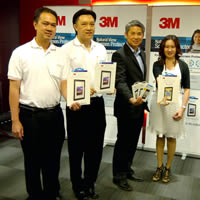 ทางด้าน คุณสริยา เมธิสริยพงศ์ ผู้จัดการแผนก Commercial Graphics และ Mobile Interactive Solutions ของบริษัท 3เอ็ม ประเทศไทย จำกัด ได้แนะนำฟิล์มเคลือบกันริ้วรอยบนหน้าจอมือถือและแท๊บเล็ต ซึ่งตอนนี้ทางบริษัทฯ ได้ทำการเปิดตัวฟิล์มเคลือบกันรอยรุ่นใหม่ ซึ่งเป็นเทคโนโลยีเฉพาะของ 3เอ็ม ผลิตจากประเทศสหรัฐอเมริกา มีด้วยกัน 3 รุ่น ได้แก่ 1) 3M Natural View Protective Films: Fingerprint Fading Screen Protector ฟิล์มเคลือบกันรอยรุ่นใหม่ที่มีคุณสมบัติพิเศษ สามารถทำให้รอยนิ้วมือลดลงและจางหายไปเมื่อทิ้งไว้ ผิวฟิล์มใสให้ภาพคมชัด ทนต่อการขีดข่วน ไม่เป็นลายเปลือกส้ม แข็งแรง กันรอยขูดขีดจากการใช้งาน ติดตั้งและทำความสะอาดง่าย ไม่เก็บฝุ่นตามขอบฟิล์ม 2) 3M Natural View Protective Films: Anti-Glare Screen Protector ฟิล์มเคลือบกันรอยชนิดผิวด้านรุ่นใหม่ที่มีคุณสมบัติพิเศษ เนื้อฟิล์มใส ลดการสะท้อนของแสงจากภายนอกโดยไม่เกิดลายสายรุ้ง ปกปิดรอยนิ้วมือจากการใช้งาน และมีการเคลือบHard coating บนเนื้อฟิล์ม เพื่อกันรอยการขูดขีดจากการใช้งาน ติดตั้งและทำความสะอาดง่าย และ 3) 3M Mobile Privacy Film เป็นฟิล์มสำหรับป้องกันการแอบมองด้านข้าง เหมาะกับผู้ที่ต้องการความเป็นส่วนตัว และต้องการความปลอดภัยของข้อมูลบนหน้าจอของท่าน ขณะเปิดหน้าจอในที่สาธารณะ