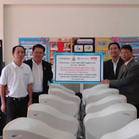 บริษัท NComputing Pte Ltd. ประเทศสิงค์โปร์ โดยนายคณิศร จิรธนโชติสกุล (ที่ 5 จากขวา) ผู้จัดการประจำประเทศไทย ร่วมกับ บริษัท พริซึ่ม โซลูชั่นส์ จำกัด ซึ่งเป็นบริษัทในเครือของบริษัท ซินเน็ค (ประเทศไทย) จำกัด (มหาชน) ที่ให้บริการด้าน onsite service ทั่วประเทศ และมีทีมวิศวกรรมผู้เชี่ยวชาญพร้อมให้คำแนะนำเรื่องระบบเครือข่าย โดยนายภาคภูมิ สุกัญจนศิริ (ที่ 2 จากซ้าย) ผู้จัดการทั่วไป และ หจก.เสริมวิทยา โดยนายวิทยา กรวิทยาศิลป (ซ้ายสุด) ประธานกรรมการบริหาร ได้ร่วมกันมอบระบบเครือข่ายคอมพิวเตอร์เสมือนจริง ยี่ห้อ NComputing รุ่น X550 จำนวน 10 เครื่อง มูลค่าสามหมื่นบาท และคอมพิวเตอร์พีซี 1 ชุด ใช้เป็นเครื่อง hosting ให้แก่โรงเรียนหนองบุญมากประสงค์วิทยาในสังกัด สพม.นท.31 เพื่อใช้สำหรับการเรียนการสอน โดยมีดร.ชูเกียรติ วิเศษเสนา (ที่ 4 จากขวา) ผู้อำนวยการสำนักงานเขตพื้นที่การศึกษามัธยมศึกษา เขต 31 นายนิรมิตร ดวดกระโทก (ที่ 3 จากขวา) ผู้อำนวยการ พร้อมคณะครูอาจารย์ของโรงเรียนเป็นผู้รับมอบ เมื่อเร็ว ๆ นี้