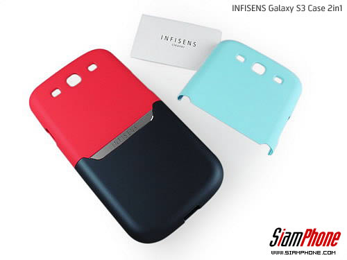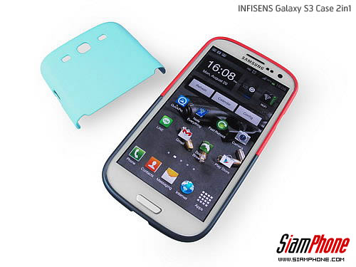 INFISENS Galaxy S3 Case 2in1 เคสคุณภาพ ผลิตและนำเข้าจากประเทศเกาหลี มาพร้อมดีไซน์พิเศษแยกเป็น 2 ท่อน (บน-ล่าง) โดยภายในกล่องจะมีท่อนบนให้เลือก 2 สี สามารถสลับใช้งานได้ อีกทั้ง ยังผลิตจากซิลิโคนเนื้อแข็ง คงรูป ไม่ทำให้เคสบิดเบี้ยวหรืองอ นอกจากนี้ ยังออกแบบให้มีลักษณะบางและเบา เมื่อส่วมใส่กับโทรศัพท์แล้วไม่ดูใหญ่เทอะทะ สามารถปกป้อง Samsung Galaxy S3 จากรอยขีดข่วนได้รอบเครื่อง
