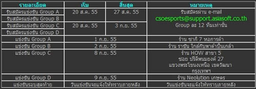 1. ส่ง E-mail ในการสมัครมาที่ csoesports@support.asiasoft.co.th โดยต้องระบุข้อมูลดังต่อไปนี้