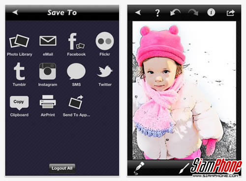 Mobile Monet - Photo Sketch and Paint FX ให้คุณเก็บภาพไว้ดูในอัลบั้ม และยังสามารถแชร์ผ่าน Email, Facebook, Instagram, Flickr Tumblr และ Twitter