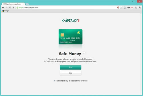 เทคโนโลยี Safe Money ของ Kaspersky Internet Security 2013