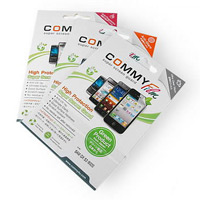 Commy Super Screen Guard ฟิล์มกันรอย มีให้เลือกหลายแบบ ได้แก่ ชนิดใส, ด้าน และลดรอยนิ้วมือ สามารถใช้ได้กับแท็บเล็ตและสมาร์ทโฟนหลากหลายรุ่น เช่น iPhone, Samaung Galaxy S3, Samsung Galaxy Note, iPad, Samsung Galaxy Tab 2 และ Galaxy Tab 10.1