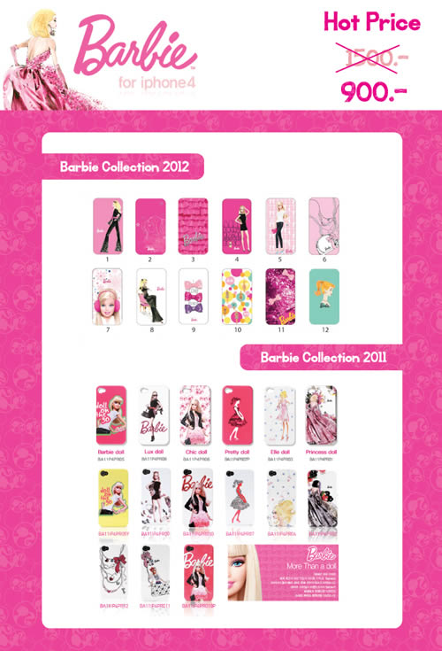 Shock! Price กับส่วนลดโดนใจ Hot Price ประจำสัปดาห์นี้สำหรับคนรัก Barbie ด้วย Barbie Collection 2011-2012 for iPhone4 น่ารัก สีสันสดใสในราคาพิเศษ 1,500 บาท เหลือเพียง 900 บาทเท่านั้น
