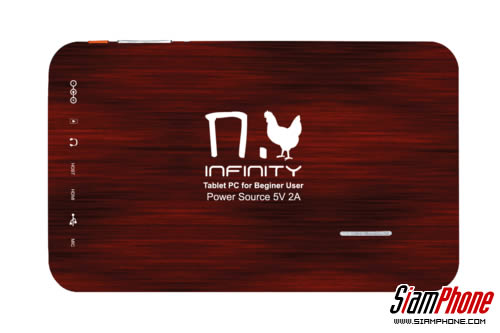 Infinity Tablet Kor Kai (อินฟินีตี้ ก.ไก่) แท็บเล็ตใช้งานง่าย สำหรับผู้เริ่มใช้ครั้งแรก มาพร้อมหน้าจอขนาด 7 นิ้ว ความละเอียด 800x480 พิกเซล อัตราส่วนกว้าง : สูง (16:9) รันบนระบบปฏิบัติการแอนดรอยด์ 4.0 Ice Cream Sandwich, CPU 1.2GHz, RAM 512MB, ROM 4GB, รองรับหน่วยความจำภายนอก microSD การ์ดสูงสุด 32GB, รองรับการเชื่อมต่ออินเทอร์เน็ตผ่าน Wi-Fi, USB port, HDMI, (ต่อสัญญาณเข้าเครื่องโทรทัศน์), กล้องหน้าความละเอียด VGA 0.3 ล้านพิกเซล (ไม่มีกล้องหลัง) รองรับการถ่ายภาพและบันทึกวิดีโอ, แบตเตอรี่ความจุ 2,400mAh สามารถรับชมวิดีโอนานต่อเนื่อง 4 ชั่วโมง