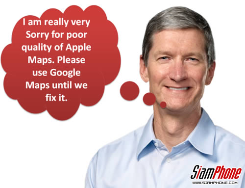 Tim Cook ซีอีโอแห่ง Apple ก็ได้ตอบจดหมายไปถึงแฟนคลับและบรรดาผู้ใช้งานสินค้าของ Apple โดยนายใหญ่แห่ง Apple ได้กล่าวขออภัยและน้อมรับความเห็นทุกความคิดจากลูกค้า และสัญญาว่าจะปรับปรุงแผนที่บน iOS ให้ดีขึ้นกว่าปัจจุบัน ทั้งนี้ทาง Tim Cook ยังได้แนะนำแผนที่ทางเลือกจากผู้พัฒนารายอื่นให้ใช้งานก่อนในระหว่างที่ Apple กำลังปรับปรุงระบบแผนที่ให้ดีขึ้น โดยเขาแนะแผนที่จาก Bing, MapQuest, Waze ที่ดาวน์โหลดผ่าน App Store ได้ หรือจะเป็นแผนที่ Google, Nokia ที่เล่นผ่าน web app บนมือถือได้เช่นกัน