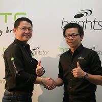 เมื่อเร็วๆนี้ นายณัฐวัชร์ วรนพกุล ผู้จัดการประจำประเทศไทย เอชทีซี (ไทยแลนด์) จำกัด (ซ้าย) และ นายกิตติพงศ์ กนกวิไลรัตน์ ผู้จัดการทั่วไป ประจำไบร์ทสตาร์ประเทศไทย (ขวา) แถลงข่าวการจับมือเป็นพันธมิตรร่วมระหว่างเอชทีซีกับไบร์ทสตาร์ เป็นดิสทริบิวเตอร์รายล่าสุดของเอชทีซี ประเทศไทย อย่างเป็นทางการ การจับมือกันครั้งนี้ช่วยเพิ่มโอกาสทางการตลาดให้เอชทีซีและที่สำคัญยังช่วยขยายช่องทางการขายพร้อมรุกตลาดสมาร์ทโฟนในไตรมาสสุดท้ายตอกย้ำความเป็นผู้นำตลาดสมาร์ทโฟน
