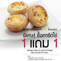 เอชทีซีต้อนรับเดือนตุลาส่ง “HTC Privilege" เอาใจลูกค้าคนสำคัญทุกเดือนตลอดปี 2555 จับมือร้าน แฟชั่นเบเกอรี่ชื่อดังอย่าง ka-nom มอบสิทธิพิเศษซื้อขนมสุดฮิต ทาร์ตไข่ 1 ชิ้น แถม 1 ชิ้น ที่ร้าน ka-nom ทั้ง 9 สาขา ตั้งแต่วันนี้ – วันที่ 31 ตุลาคม 2555 เท่านั้น นอกจากนี้ยังมาพร้อมพาเหรดส่วนลดมากมายจากร้านค้า ร้านอาหารชื่อดังตลอดปี อาทิ Shabu Ken, A Seat Bar& Restaurant, Hive Salon, Smoothies secret, hidden agenda, coffee lover เป็นต้น งานนี้แฟนตัวจริงเอชทีซีที่ชื่นชอบของหวานไม่ควรพลาด!!