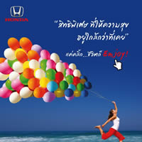 บริษัท ฮอนด้า ออโตโมบิล (ประเทศไทย) จำกัด เปิดตัวเว็บไซต์ www.enjoyhondaclub.com ตอบสนองไลฟ์สไตล์คนรุ่นใหม่ในยุคดิจิตอล มอบส่วนลด สิทธิพิเศษและกิจกรรมมากมายสำหรับลูกค้าฮอนด้าและบุคคลทั่วไป พร้อมนำเสนอเรื่องราวอัพเดทเทรนด์ต่างๆ เพื่อให้ประสบการณ์ความสุขอยู่ใกล้กว่าที่เคย ในทุกรูปแบบของการใช้ชีวิต ภายใต้แนวคิด “แค่คลิ้ก...ชีวิตก็ Enjoy!”