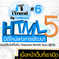 งานเสวนา IT iTrend by Thaiware ครั้งที่ 6 ในตอน "HTML5 มิติใหม่แห่งการพัฒนา" โดยงานนี้ ได้เชิญนักพัฒนา HTML5 และ CSS รวมถึง Tools อื่นๆ อีกโดยจะได้พบกับนักพัฒนาที่มีประสบการณ์การใช้งานHTML5 รวมถึง พบกับวิทยากรผู้รู้จริงจากภาครัฐและภาคธุรกิจ มาร่วมเสวนาบนเวทีเดียวกัน โดยงานจะจัดขึ้นในวันเสาร์ที่ 27 ตุลาคม 2555 ที่ K SME Care: Knowledge Center จามจุรี สแควร์ ชั้น 2 (สถานีรถไฟฟ้า MRT สามย่าน) ตั้งแต่เวลา 12.00 น. เป็นต้นไป
