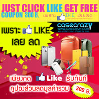 Casecrazy จัดโปรโมชั่น เอาใจลูกค้า 'เพราะ Like เลยลด!' เพียงคลิ๊ก Like และกรอกแบบฟอร์มที่ casecrazy.com รับฟรี ! ทันทีคูปองส่วนลด เพื่อใช้ซื้อสินค้าผ่านเวปไซด์ casecrazy.com รวมมูลค่าถึง 300 บาท (คูปองจัดส่งให้ทางอีเมล์) วันนึ้-31 ตุลาคม นี้ อย่าช้า รีบ ๆ เข้ามา Like กัน