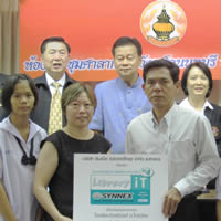 คุณสุวรรณี ลี่ รองประธานเจ้าหน้าที่บริหารฝ่ายบริหารผลิตภัณฑ์และสื่อสาร บริษัทซินเน็ค (ประเทศไทย) จำกัด (มหาชน) (แถวล่างที่ 2 จากซ้าย) ส่งมอบโครงการห้องสมุดไอที เพื่อพัฒนาการศึกษาไทย (Library IT by Synnex) ประกอบด้วยชุดคอมพิวเตอร์พร้อมซอฟต์แวร์ ให้กับตัวแทนของโรงเรียนใน จ.นนทบุรี ที่ได้รับการคัดเลือกจำนวนทั้งสิ้น 6 โรงเรียน ได้แก่ โรงเรียนบางบัวทอง โรงเรียนวัดโชติการาม โรงเรียนวัดซองพลู โรงเรียนวัดไทรม้า โรงเรียนวัดเสนีวงศ์ และโรงเรียนสุเหร่าเขียว โดยมีนายวิเชียร พุฒิวิญญู ผู้ว่าราชการจังหวัดนนทบุรี (แถวบนที่ 3 จากซ้าย) นางเบญจมาศ สมบูรณ์ ประธานสภาอุตสาหกรรมจังหวัดนนทบุรี (กลางแถวบน) พร้อมคณะสภาอุตสาหกรรมจังหวัดนนทบุรี และนายกเหล่ากาชาด ร่วมเป็นสักขีพยาน ณ ศูนย์ราชการจังหวัดนนทบุรี เมื่อเร็วๆ นี้