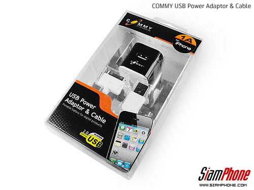 COMMY USB Power Adaptor & Cable อแดปเตอร์พร้อมสาย USB สำหรับชาร์จแบตเตอรี่สมาร์ทโฟนกับไฟบ้าน หรือคอมพิวเตอร์ อีกทั้ง ยังใช้ในการถ่ายโอนข้อมูลระหว่างคอมพิวเตอร์กับสมาร์ทโฟน ถูกออกแบบมาให้สะดวกใช้งานกับ iPhone และ BlackBerry