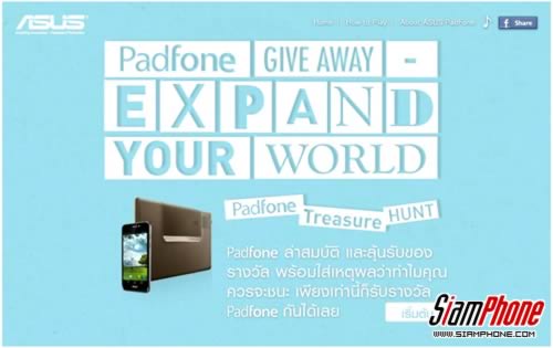 และอีกกิจกรรมที่ไม่ควรพลาด “Padfone Expand Your World” เป็นการเล่นเกมส์ล่าสมบัติ โดยหลังจากผ่านด่านต่างๆ แล้ว ให้ส่งชื่อเข้าชิงรางวัล พร้อมบอกเหตุผลว่า "ทำไมคุณถึงสมควรได้รับรางวัล" เพียงเท่านี้ก็มีสิทธิ์ลุ้นรับ ASUS Padfone+Pad station+ Bluetooth stylus จำนวน 1 รางวัล รวมมูลค่า 24,900 บาท ตั้งแต่วันนี้ – 15 พฤศจิกายน 2555 และประกาศรายชื่อผู้โชคดีวันที่ 19 พฤศจิกายน ผ่านทาง ASUS Thailand Fanpage
