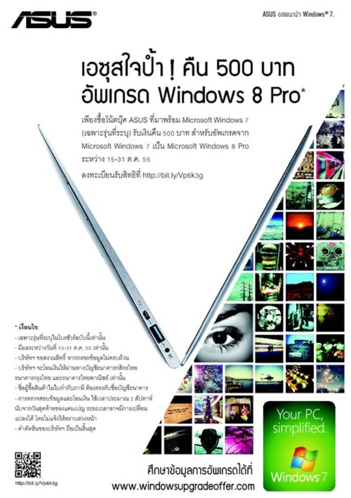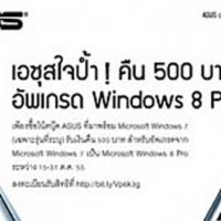 เอซุส ส่ง 2 กิจกรรมพิเศษตอบแทนลูกค้า เพียงซื้อโน้ตบุ๊กเอซุสที่มาพร้อม Windows 7 รับเงินคืน 500 บาท สำหรับอัพเกรดเป็น Windows 8 Pro พร้อมเชิญร่วมสนุกเล่นเกมส์ล่าสมบัติและตอบคำถามชิงรางวัลใหญ่ “Padfone” ที่เป็นทั้งสมาร์ทโฟนและแท็บเล็ตรุ่นล่าสุดจากเอซุส เริ่มแล้ว วันนี้เป็นต้นไป