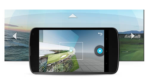 ในส่วนของกล้องถ่ายรูป มีกล้องหลังความละเอียด 8 ล้านพิกเซล พร้อมด้วยคุณสมบัติพิเศษ การถ่ายรูปในทุกทิศทางด้วยฟังก์ชั่น "Photo Sphere" (คล้ายกับพาโนราม่าแต่สามารถหมุนกล้องได้รอบตัวแทนที่จะเป็นแนวราบหรือแนวดิ่งอย่างใดอย่างหนึ่ง ดูคลิปวิดีโอประกอบด้านล่าง)