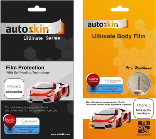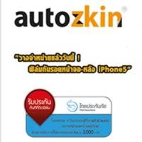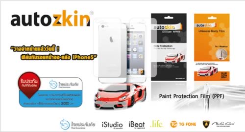 Autozkin ผู้นำแห่งนวัตกรรมฟิล์มใสปกป้องสีรถและฟิล์มกันรอยปกป้องกระจกหน้ารถยนต์จากอเมริกา พัฒนาเนื้อฟิล์มสู่ฟิล์มกันรอยหน้าจอ-หลังสำหรับสมาร์ทโฟนและแทบเลท ระดับพรีเมี่ยม ปฏิวัติวงการฟิล์มกันรอยอีกครั้งด้วยการผลิตชุดฟิล์มกันรอยหน้าจอและหลังชนิดพิเศษ สำหรับสมาร์ทโฟนรุ่นใหม่ล่าสุด iPhone 5 พร้อมรับประกันกระจกหน้าจอแตกทันทีที่ติดฟิล์ม โดยบริษัทไทยประกันภัย จำกัด (มหาชน)