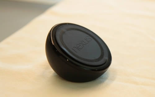 Wireless Charging Orb อุปกรณ์เสริมสำหรับ Nexus 4 ลักษณะทรงกึ่งกลม โดยด้านบนที่มีสัญลักษณ์ Nexus เป็นพื้นที่สำหรับเป็นแท่นวางสำหรับชาร์จไฟซึ่งเป็นแผ่นแม่เหล็กที่สามารถยึด Nexus 4 ให้สามารถใช้งานได้ทั้งแนวตั้งและแนวนอน