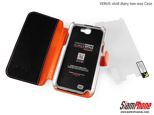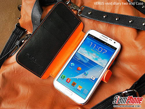 Casecrazy แนะนำ VERUS vivid diary two way Case เคสหนังดีไซน์ทันสมัย ออกแบบมาสำหรับ Samsung Galaxy Note 2 มาพร้อมฝาแบบเปิดปิดด้านหน้า โดยมาในโทน 2 เฉดสี คือ สีดำ และสีส้มมาผสมกัน จึงทำให้งานเคสออกมาได้อย่างสวยงาม นอกจากนี้ยังสามารถใช้ประโยชน์ได้อีกมากมาย อาทิ เก็บนามบัตรของคุณ หรือบางครั้งหากไม่ต้องการพกกระเป๋าสตางค์ให้ยุ่งยากก็สามารถใช้เป็นที่เก็บเงินของคุณได้เช่นเดียวกัน