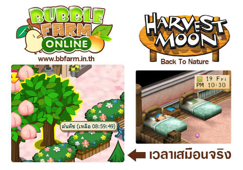 1. เวลาเสมือนจริง Bubble Farm (Harvest Moon) นั้นนับเวลาเสมือนจริง 24 ชม. ปลูกผักไว้ 2 นาที ก็นับเวลาตามจริง 2 นาที ซึ่งแตกต่างจากเดิมคือ ภาคเก่านั้น เมื่อเข้านอน ก็จะเริ่มวันใหม่ในทันที ไม่ต้องรอเวลาตามจริง
