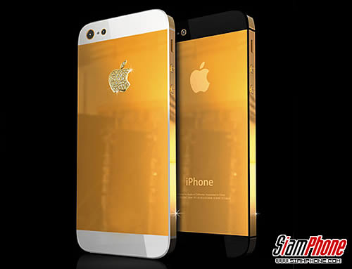 Solid gold iPhone 5 ด้านหลังและด้านข้างของตัวเครื่องจะถูกประดับด้วยทอง 18K หนัก 128 กรัม และโลโก้รูปแอปเปิลถูกฝังด้วยเพชรที่ส่องแสงระยิบระยับทั้งหมด 53 เม็ด น้ำหนักรวม 1 กะรัต นับว่าเป็นการผสมผสานได้อย่างลงตัวและกลมกลืนบน iPhone 5 ที่มีความจุ 64GB สำหรับผู้ที่สนใจอยากเป็นเจ้าของ Solid gold iPhone 5 มีจำนวนจำกัดเพียง 100 เครื่องเท่านั้น สนนราคาอยู่ที่ £ 21,995.00 (ประมาณ 1,081,000 บาท)