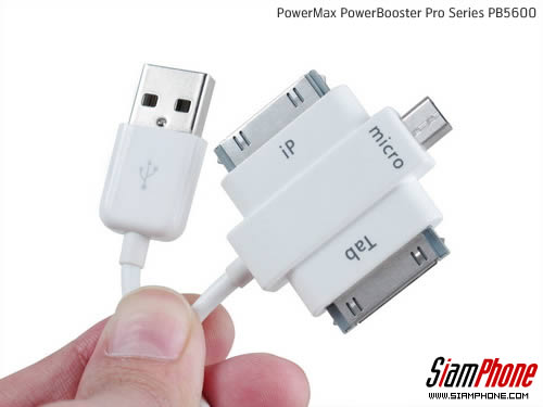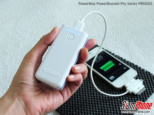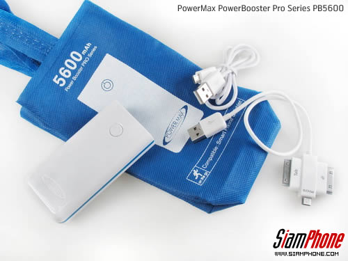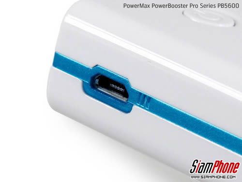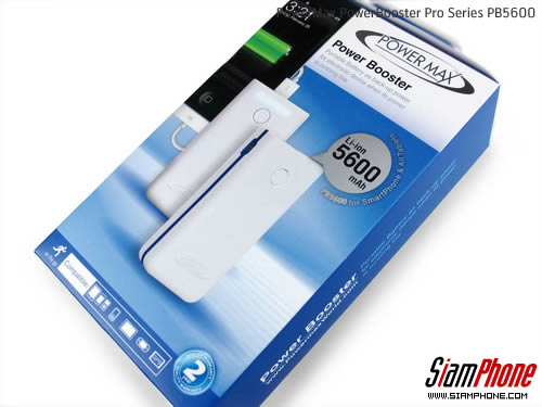 Powermax Power Booster รุ่น PB5600 แบตเตอรี่สำรองพกพาสำหรับใช้ชาร์จผลิตภัณฑ์ Apple (iPhone/iPad) และยังสามารถใช้งานร่วมกับ Galaxy Tab หรืออุปกรณ์อิเล็กทรอนิกส์ที่รองรับการเชื่อมต่อ Micro USB
