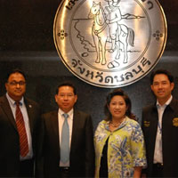 นางพรรณสิรี อมาตยกุล กรรมการผู้จัดการใหญ่ บริษัท ไอบีเอ็ม ประเทศไทย จำกัด (กลาง) ดร.ประธาน สุรกิจบวร หัวหน้าสำนักงานจังหวัดชลบุรี (ขวาสุด) นายอิทธิพล คุณปลื้ม นายกเมืองพัทยา (ที่สองจากขวา) เรือเอกสุทธินันท์ หัตถวงษ์ ผู้อำนวยการท่าเรือแหลมฉบัง (ที่สองจากซ้าย) และนายกริชนัน รามาจันดรัน ตัวแทนคณะผู้บริหารโครงการสมาร์ทเตอร์ ซิตี้ชาเลนจ์ (ซ้ายสุด) ร่วมงานแถลงข่าว เนื่องในโอกาสที่คณะผู้เชี่ยวชาญโครงการสมาร์ทเตอร์ซิตี้ ชาเลนจ์ของไอบีเอ็มเสนอผลสรุปโครงการที่มุ่งส่งเสริมการพัฒนาเศรษฐกิจของชลบุรีแก่คณะผู้บริหารระดับสูงจากจังหวัดชลบุรี เมืองพัทยา และท่าเรือแหลมฉบัง
