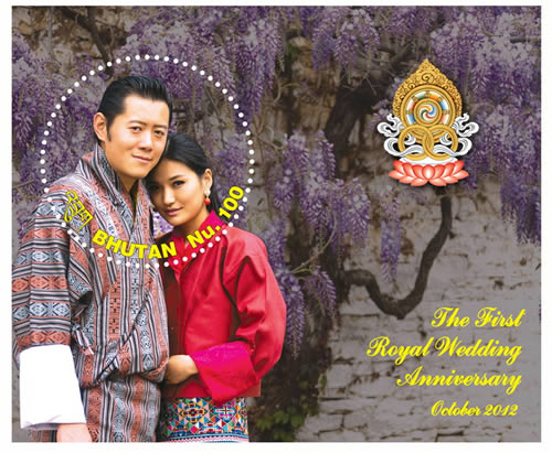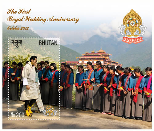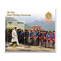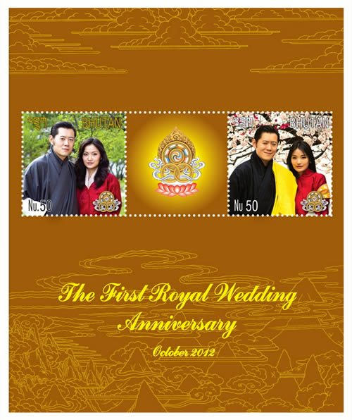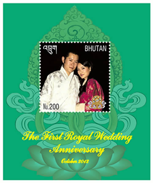 บริษัท อินเตอร์แนชชั่นแนล เฮ้าส์ ออฟ แสตมป์ (สยาม) จำกัด ขอแนะนำ แสตมป์ที่ระลึกฉลองครบรอบ 1 ปี การอภิเษกสมรส สมเด็จพระราชาธิบดี จิกมี เครเซอร์ นัมเกล วังชุก และสมเด็จพระราชินีจัสเซน เปมา วังชุก ที่จัดทำขึ้นโดยไปรษณีย์ภูฏาน โดยแสตมป์ชุดประวัติศาสตร์นี้ถูกสร้างสรรค์โดยใช้เทคนิค “การพิมพ์สีทองแบบพิเศษ” ที่จะช่วยเสริมให้แสตมป์มีความงดงาม ควรค่าแก่การสะสมยิ่งขึ้น