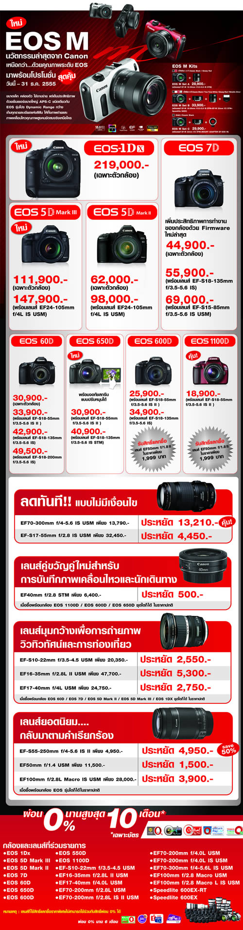 Canon พร้อมให้คุณเป็นเจ้าของได้แล้ววันนี้ - 31 ธ.ค. 55 สามารถสอบถามรายละเอียดเพิ่มเติมได้ที่ http://www.canon.co.th