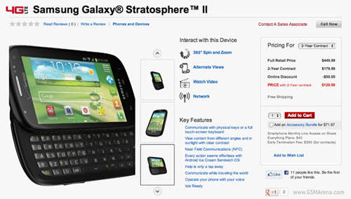 Samsung Stratosphere 2 สมาร์ทโฟนแอนดรอยด์พร้อมแป้นพิมพ์ QWERTY เปิดขายในสหรัฐอเมริกาผ่านทาง Verizon ในราคา $129.99 (ประมาณ 4,000 บาท) ซึ่งจะติดสัญญาสองปี