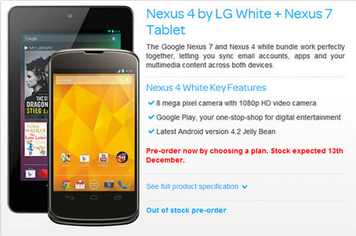 แม้จะไม่ได้ประกาศอย่างเป็นทางการว่า LG Nexus 4 จะออกรุ่นสีขาวมาเพิ่มเติมในเร็ววันนี้ แต่แหล่งข่าวแห่งหนึ่งได้เผยรายละเอียดการสั่งซื้อล่วงหน้าผ่าน TalkTalk ผู้ให้บริการเครือข่ายมือถือใน UK ว่าจะมี LG Nexus 4 ในเวอร์ชั่นสีขาว พร้อมกับ Nexus 7 ซึ่งคาดว่าจะมีสินค้าในสต็อกวันที่ 13 ธันวาคมนี้ อย่างไรก็ตามคงจะต้องติดตามกันอีกครั้งว่า LG Nexus 4 เวอร์ชั่นสีขาวนั้นจะมีวางจำหน่ายจริงหรือไม่